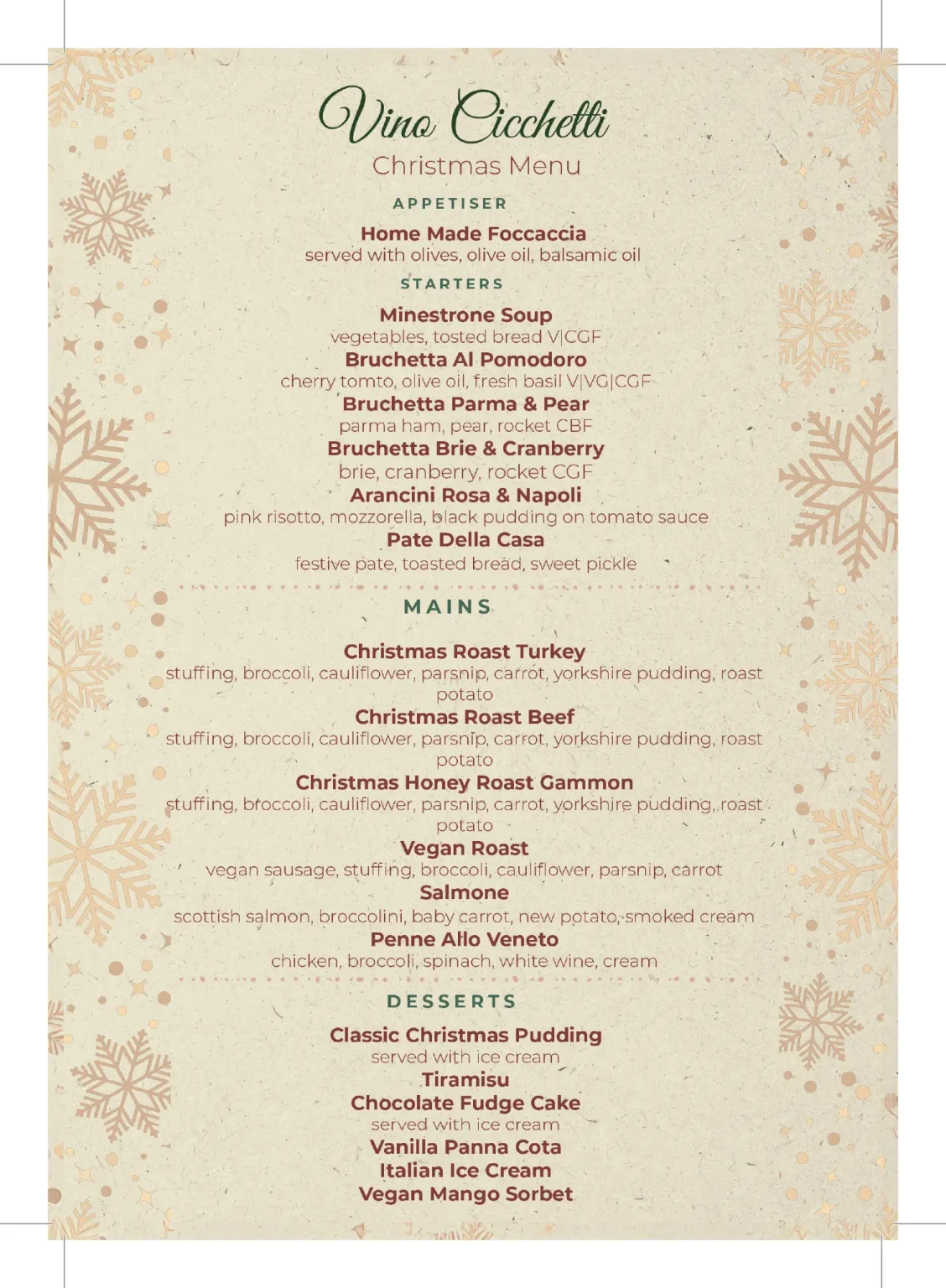 Vino Cicchetti was born from a love of wine, food, and the art of bringing people together. Our name blends “vino”, the carefully sourced wines from across Italy and the Mediterranean, with “cicchetti”, the traditional Venetian large plates designed to be shared.